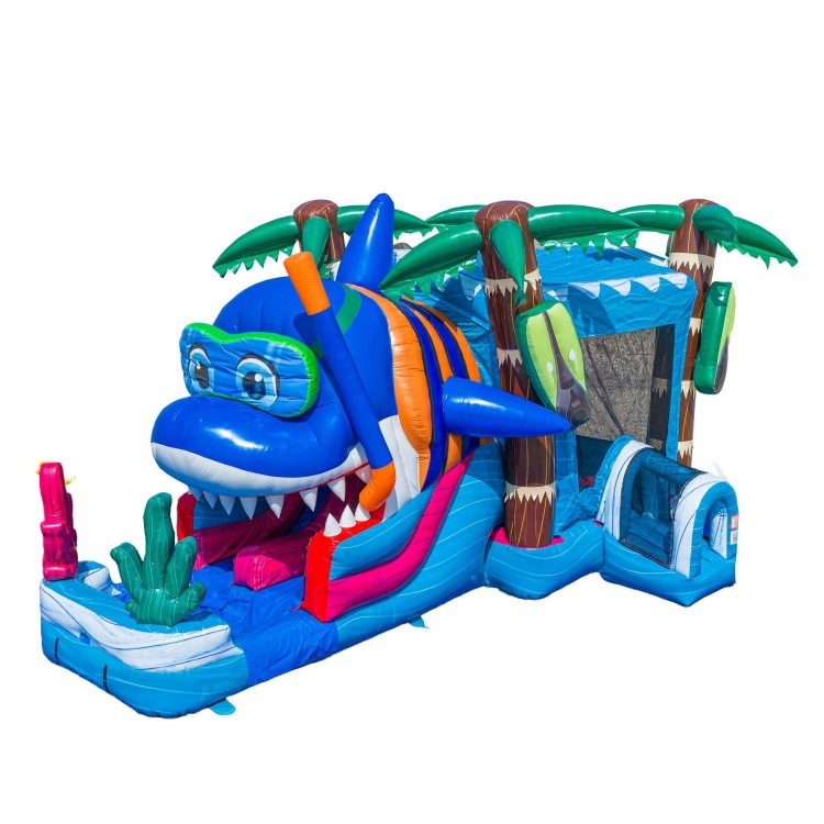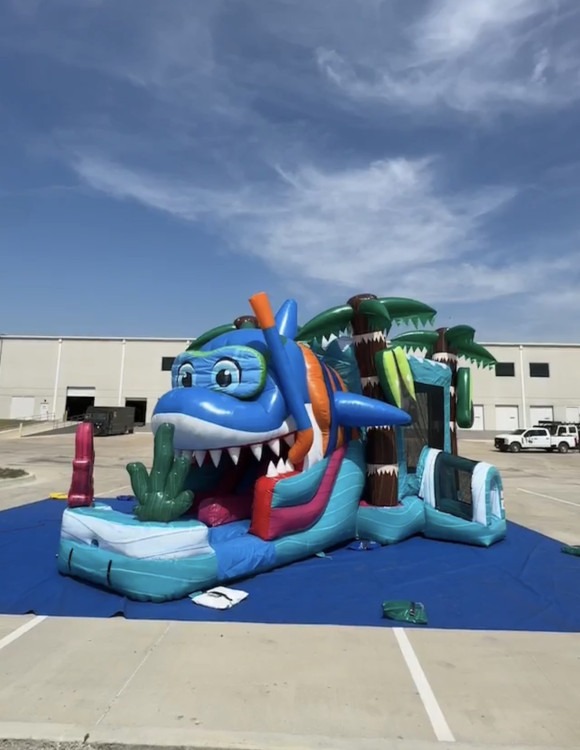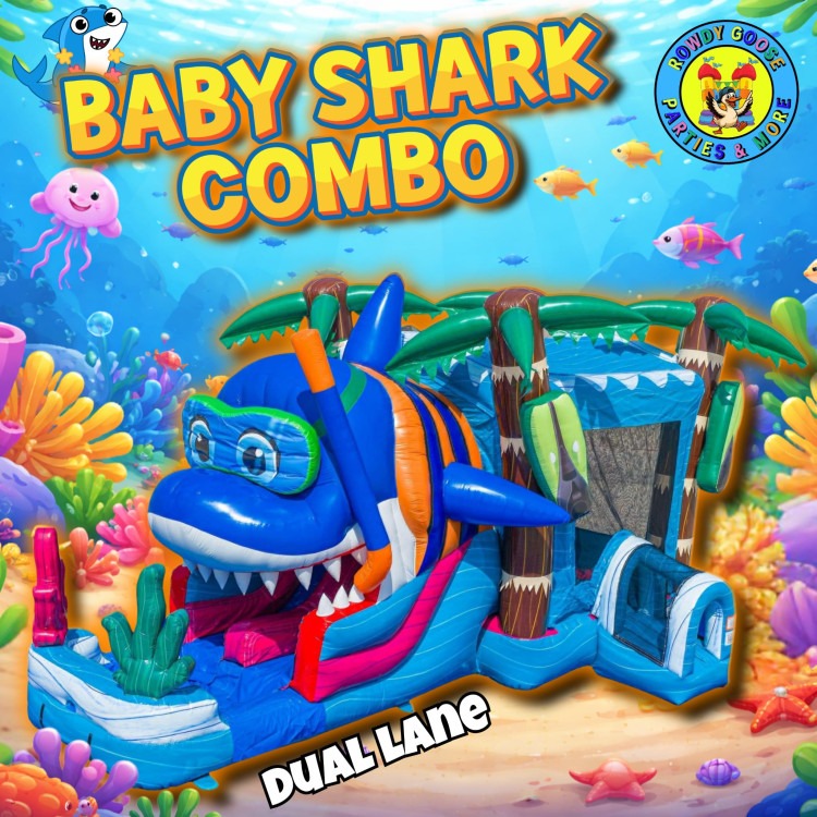 Dive into fun with the Baby Shark Dual Lane Combo. Kids can bounce, climb, and race down the dual slides in this vibrant ocean-themed inflatable that’s perfect for parties and events.