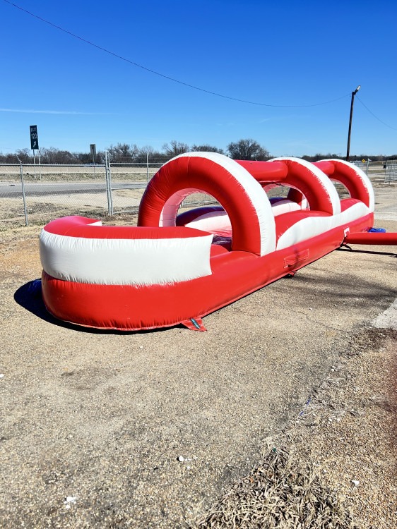 Dive into a sea of fun with the Red & White Slip N Slide! This vibrant inflatable brings splashes of joy and laughter to any event. With its sleek, dual-colored design, it beckons sliders to a thrilling, wet adventure. Perfect for sunny days, it's the ultimate rental to keep everyone cool and entertained. Get ready to slip, slide, and make unforgettable memories!